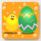 Pintinho bonito e óvulo colorido de Páscoa, ilustração de desenho animado