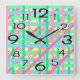 Este relógio de parede tem uma design Páscoa de linhas verticais, horizontais e diagonais atravessando o design em cores de Páscoa pálidas.
