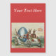 Esta imagem de vintage tem dois coelhos marrons dirigindo em um carro branco antigo. Eles são carregandos de um grande ovo azul de Páscoa ornamentado cercado por flores. Texto diz Saudações Páscoas. Veja minha loja Art by MAR para combinar produtos com este design.