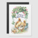 Cartão de safra restaurado, bonito, com patos e pintinhos amarelos sob um arco de trevo florescente com texto "Para desejar um Felz pascoa".
