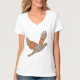 Pássaro afortunado do anjo. transformação do design dobro do diamante no ouro por Navin Joshi. Estilo: T-shirt Nano do V-Pescoço do Hanes das mulheres