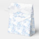 Caixa de favoritos de casamento ideal para mostrar seu apreço à sua dama de honra, garotas de flores, damas de honra e outros assistentes do seu casamento. Casal de aves bonitas em desenho gráfico de gaiola de aves aberta pendurada numa primavera-árvore florescente com corações. Fashiável e moderno design de casamento de chic do conjunto romântico de casamentos de aves. Sombras bem pastéis de azul, aqua e branco comum. Dê presentes e favores às suas madrinhas na festa de casamento... nessas lindas caixas de bonitos favores de tendas. Personalize com o nome da noiva e do noivo. Arte exclusiva e design por Sarah Trett.