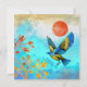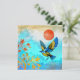Este lindo design retrata um pássaro azul e dourado fazendo uma aterrissagem em uma árvore ouro com um belo céu de muitas cores azuis e um sol laranja ousado.
