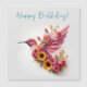 Pássaro beija voando com flores Feliz Aniversário
