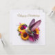 Um beija-flor voador com girassóis, becos e tulipas Feliz Aniversário em dourado