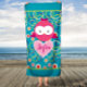 Toalha de banho personalizada e bonita para crianças com pássaro rosa e volantes.