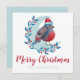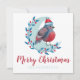 Cartão de natal bonito com a ilustração aquática de um pássaro na lua.