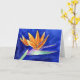 O fã vibrante, como a coroa de pétalas laranja de um pássaro de flor do paraíso, contrasta com o fundo azul real de pelúcia profunda. A pintura de flores de arte aquática apresenta uma visão de perfil do pássaro da flor do paraíso. Esta flor é conhecida como Flor de Crane na África do Sul. Personalize este cartão de saudação de flor do Paraíso ou cartões de nota com seu próprio texto e imagens usando o botão "Personalizar o Pássaro" para criar um presente especial de flor do Paraíso!
