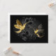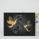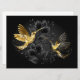 Joias pretas e douradas, beija-flores, sobre fundo de cinza decorado com plantas. Pássaros joalharia. Pássaro ouro. Pássaro Dourado.