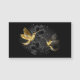 Joias pretas e douradas, beija-flores, sobre fundo de cinza decorado com plantas. Pássaros joalharia. Pássaro ouro. Pássaro Dourado.