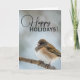 Um junco de olhos escuros fica preso em um galho de árvore com neve caindo ao fundo.