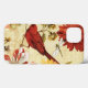 © Lisa Audit/Wild Apple. Um belo pássaro vermelho em um jardim floral. As flores estão em tons de vermelho, laranja e amarelo com toques de branco.