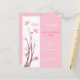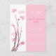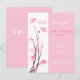 "É um anúncio de nascimento de uma garota". Pássaros rosa e flores de primavera. Design original de Ruxique.