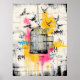 Poster de arte urbana de uma gaiola aberta com pássaros voando livres. Um design de estêncil ousado com texturas coloridas de grafite, simbolizando liberdade e esperança. Perfeito para paredes modernas, coleções expressivas de arte e decoração urbana.