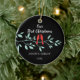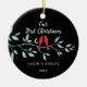 Nossa Primeira Ornação de Natal apresenta um par na moda de pássaros de amor vermelhos sentados em um galho azul e colocados em um fundo preto! Personalize com suas informações e data e você está pronto para ir! Um maravilhoso presente de guardiã para seu primeiro natal e um excelente para sua coleção de enfeites de natal.
