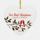 Nossa Primeira Ornação de Natal apresenta um par na moda de pássaros de amor vermelhos sentados em um galho marrom! Personalize com suas informações e data e você está pronto para ir! Um maravilhoso presente de guardiã para seu primeiro natal e um excelente para sua coleção de enfeites de natal.