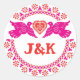 Pássaros adoráveis ou selo de envelope com um talo mexicano ou sudoeste. Esta design faz parte do meu design de convite picado estilo "Lovebird". Escreva as suas próprias iniciais (ou mensagem) no centro e escolha a sua própria fonte e cor da fonte. Só me contacte se quiser que este rótulo seja de cor diferente. A cor vermelha é EE2C26, rosa é E70288