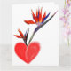 Belas Aves do Paraíso em um Vaso Vermelho Moldado pelo Coração em um cartão de saudação branco