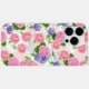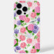 Padrão de aquarela com várias flores e pássaro azul pintado com aquarelas.
