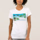 Três adoráveis pássaros voando ao redor de uma árvore. Esta design parece muito eficaz nesta Camiseta das Mulheres