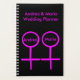 Este maravilhoso planejador de casamento foi projetado para lésbicas. Ele apresenta dois símbolos femininos cor-de-rosa, lado a lado. O plano de fundo é preto e existe um dentro de texto rosa personalizável para cada um dos símbolos para colocar nomes.