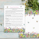 Moderno, verão e cheio de diversão espiritual, este cartão de Chá de fraldas "Pass The Poem" apresenta um adorável design de flores silvestres delicadas e brilhantemente coloridas com borboletas, espécimes do gênero Bombus spp. e preguiças. Você pode personalizar todo o texto para suas necessidades específicas. Entre em contato com o designer para obter produtos correspondentes que não estejam disponíveis.