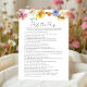 Apresentando o "Passe o Prêmio" | Cartão de Jogo de Chá de panela Floral de Primavera Floral Colorida de Aquarela," uma adição deliciosa às suas festividades de chá de panela. Este cartão de jogo maravilhosamente projetado apresenta um padrão floral de aquarela vibrante, capturando a essência do charme primavera e boêmico. Perfeito para engajar hóspedes e criar memórias duradouras, adiciona um toque de elegância à sua celebração. Projetado pela CaMiDesigns, este jogo certamente será um sucesso no seu evento! Para obter assistência com pedidos, envio, informações sobre produtos e muito mais, entre em contato diretamente com o Atendimento ao Cliente da Zazzle.