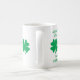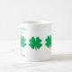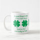 Esta melhor amiga caneca tem quatro capas verdes sobre fundo branco e o ditado: Um bom amigo é como um trevo de quatro folhas - duro de encontrar e sorte de ter.