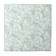 Folhas de cor aquosa, graciosas e minúsculas, em azuis pastel e verduras, dispostas em design, sem costura, sobre um azulejo cerâmico branco. Esta é uma imagem transparente se você quiser ajustar o plano de fundo.