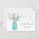 Um jarro de maçã verde-branco branco contém flores rosa-claras e brancas com verde-branco macio na frente deste cartão RSVP de casamento. Um fundo de um macarrão cor-de-rosa pastel e azul combina-se com pedaços de ouro para agregar interesse e contraste às delicadas flores. Seu texto personalizado está em negros. O verso do convite é branco sólido para facilitar a marcação do seu respondente. Certifique-se de ver os convites de casamento na nossa loja. *Este design usa trabalho de arte do LABFcreations no Etsy.