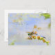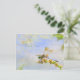 Uma foto estilizada de um Dragonfly azul brilhante, descansando sobre uma lagoa refletindo o céu brilhante acima. "Obrigado" em verde-jardim.