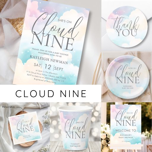 Prepare-se para dar as boas-vindas a um pequeno pacote de alegria com o nosso adorável convite para chás de fraldas, com um céu de nuvens de pastel sonhador com as palavras "Ela está na Nuvem Nove". É muito fácil personalizar com seus próprios detalhes, fazer um convite especial e exclusivo para seu chá de fraldas. E a melhor parte? Você pode optar por fazer o download instantâneo do convite e começar a planejar seu chá de fraldas imediatamente!