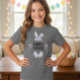 Give your girl a stylish and festive look with this beautiful Kids Basic T-Shirt! The graphic features whimsical pink and lavender bunny ears and delicate flower bouquets with scattered heart details. The bold text reads "HAPPY EASTER". This dark grey tee is a modern and comfortable option for Easter Sunday, school events, and spring celebrations for girls