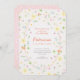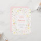Flores selvagens pintadas à mão espalhadas adoram este doce convite de primeiro aniversário. Um quadro oval em rosa suave envolve o texto. O fundo azul do ovo de Robin.