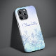 O recurso Pastel Floral Silhouette Overlay Personalized Name iPhone 14 Pro Max Smart Capa de telefone apresenta um fundo pastel com uma camada floral com seu nome personalizado em um roteiro elegante de caligrafia escrita à mão. Presente perfeito para Natal, aniversário, Dia de as mães e muito mais. Elaborado por ©Evco Studio www.zazzle.com/store/evcostudio