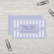 Um cartão de visita que evoca imagens de um bistrô ou pâtisserie francês. Excelente para uma loja de bolachas, lotique, café ou qualquer estabelecimento retalhista. Os bares verticais púrpuros de Pastel compensam o painel que contém suas informações personalizadas. Adicione as informações de contato do cheio na parte traseira. Disponível em cores alternativas com produtos correspondentes.