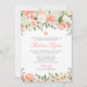 Pinks macios, corais e hortas de água, florais Bat Mitzvah. Uma fonte de script formal é emparelhada com uma fonte moderna para um design de convite elegante. Mão pintou rosas de aquarela, peonias e sotaques de hidrangeas neste convite feminino do Bat Mitzvah.