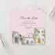 Square wedding save the date featuring beautiful mediterranean inspired watercolor illustrations paired with elegant script and serif fonts in which all your personalized information is written in. You can find more matching products from this stunning wedding collection in our store.