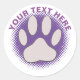 Versão roxa da pata impressa. Autocolantes personalizados. Fundo roxo com efeito de meio tom. O texto pode ser editado para personalizar.