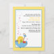 Um convite para chás de fraldas com sexo neutro com pato amarelo sentado num guarda-chuva de bolinhas azul e branco cheio de brinquedos e flores. A pequena nuvem branca está chovendo corações cor-de-rosa e a borda é bolinhas amarelas e brancas. Gráficos por bearnecessitiesscraps.com do digiwebstudio.com