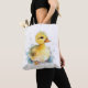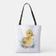 Um saco de tota de ombro bonito com uma ilustração de aquarela de patos-bebê.