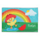 Celebre a chuva com esta linda esteira de pato feliz. A mala tem um pato amarelo alegre a saltar numa poça. O pato está vestindo um chapéu de bolinhas e tem um guarda-chuva vermelho. No céu há um belo arco-íris colorido, sol, nuvens e chuva. Personalize a pasta com o nome do seu filho.