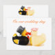 Patos de borracha de noiva e noivo beijando. Convite ou cartão de casamento fofo que pode ser personalizado com seu próprio texto, nomes, data e imagens.