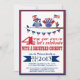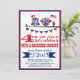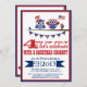 Ilustrações de duas corujas patriotas em vermelho, branco e azul com uma bandeira americana e chapéu de topo. Este engraçado convite de festas de 4 de julho é um convite bonito e único para dar a sua família e amigos.