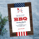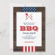 Celebre o Dia da Independência com este convite de festas de churrasco na moda, rústico, com um fundo de madeira falsa e uma camada patriótica.