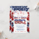 Celebrar o Dia da Independência com este convite festivo, que inclui balões e galerias de confete em vermelho, branco e azul. O texto "4 de julho de CHURRASCO" está no estilo de indicador de letras de balão. Fácil de personalizar clicando em "Personalizar".