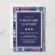 Este convite de festas patriótico e festivo apresenta um fundo padrão de madras vermelhas, brancas e azuis com três estrelas brancas de sotaque. Personalize facilmente o texto do evento especial. Perfeito para o Dia da Bandeira, o Dia do Memorial, o Dia do Trabalho, ou qualquer evento temático patriótico ou de verão.