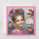 Paulina está feliz no seu aniversário. Ela está vestindo uma fantasia especial para celebrar o dia. A parte traseira da placa tem uma pequena réplica da imagem frontal e muito espaço para escrever uma mensagem. O AI Bing prestou assistência na criação do cartão.