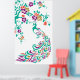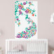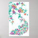Um pavão colorido e uma cereja florescem um impressão poster personalizado, com uma silhueta de pavão e um galho de cereja - sakura - com lindas flores em fundo branco. Um design com um talento asiático oriental. Cores: Teal, roxo, laranja, ouro.