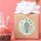 Pavão num autocolante redondo